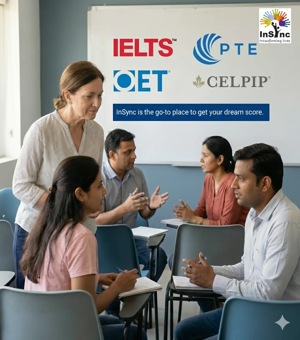 From IELTS classes in Chennai to OET prep, CELPIP lessons, or PTE support, InSync brings skill, years of know-how, along with real care to guide you through. Forget calling us just the top IELTS institute here - think of us more like teammates rooting for the life you’re aiming to build.